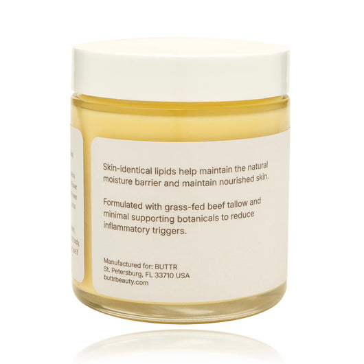 BUTTR Tallow Skin Balm is a 10-ingredient moisturizer built around grass-fed beef tallow — one of the most skin-compatible fats in nature. But we didn't stop at tallow. We added shea butter for a silky, non-greasy feel, raw honey as a natural humectant to draw moisture in, olive oil to soften and condition, sea buckthorn oil for nutrient-dense conditioning, and oat kernel flour to support the skin's natural moisture barrier.